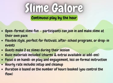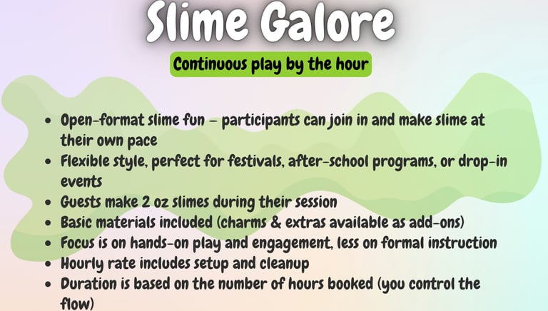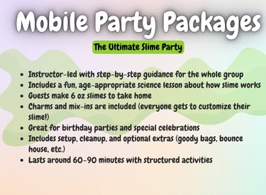 Perfect for birthdays and standard slime parties up to 25 people