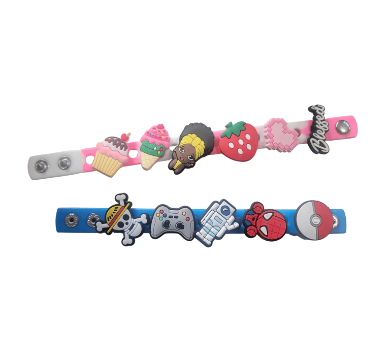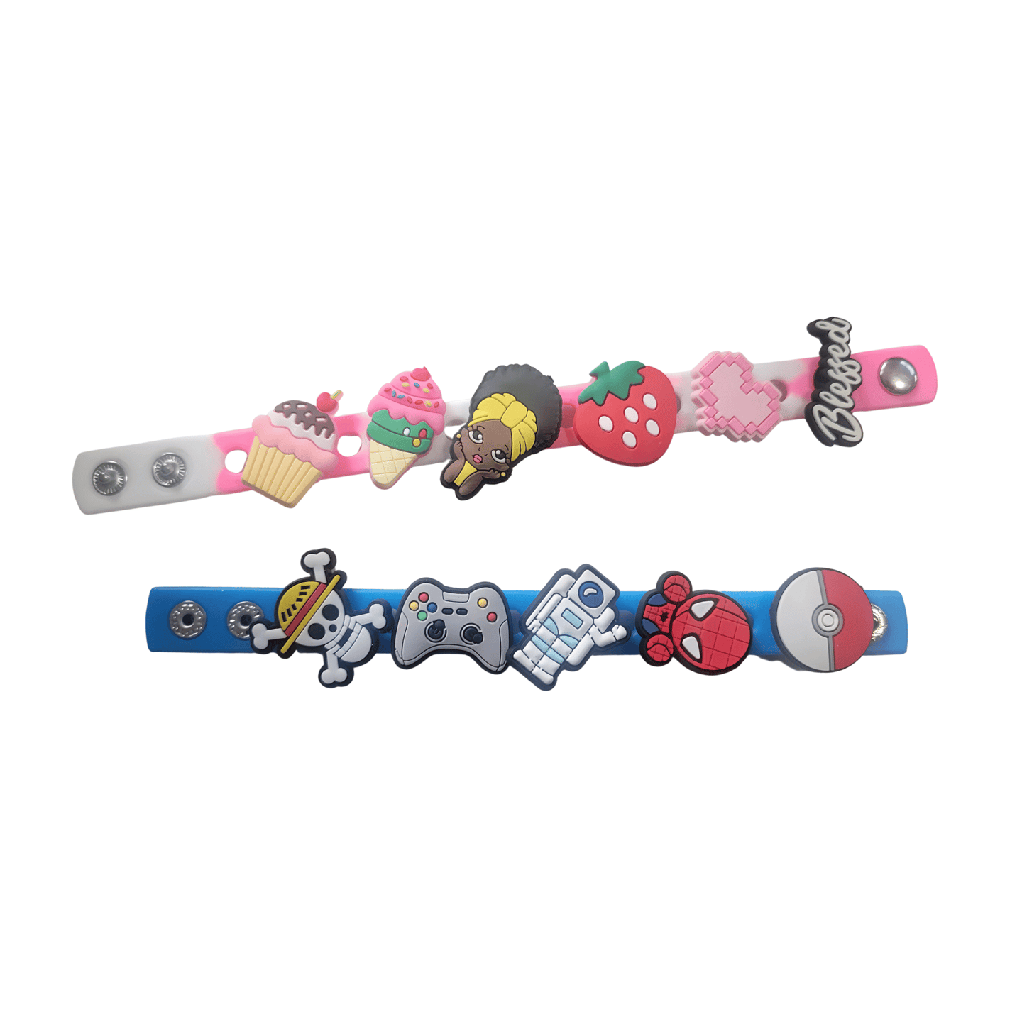 Our charm parties give guests a “Charm Shop Experience” where they get to design their very own colorful bracelets with fun snap-in charms! Each guest chooses up to 6 charms from our vibrant collection to create a bracelet that matches their unique style.